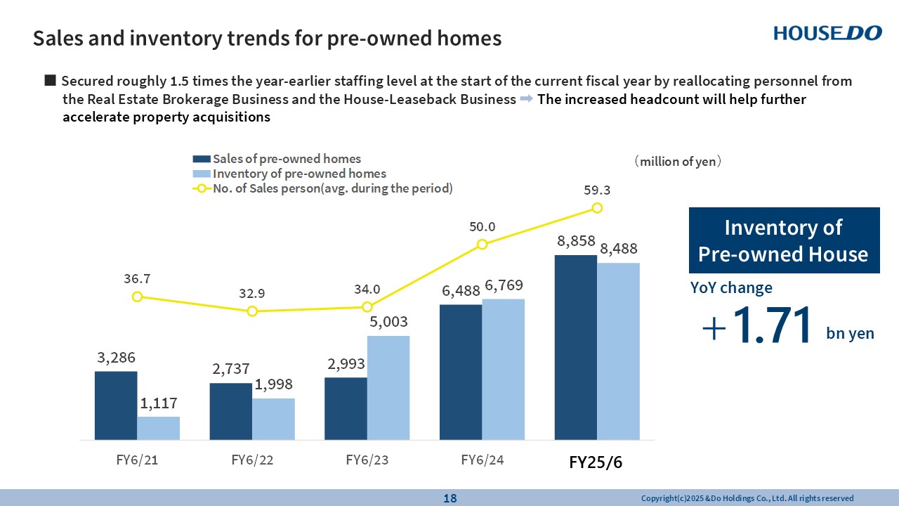 Notably, as a result of shifting personnel from the Real Estate Brokerage Business and the House-Leaseback Business, we had already secured about 1.5 times the number of personnel compared with the previous fiscal year at the start of the current fiscal year.