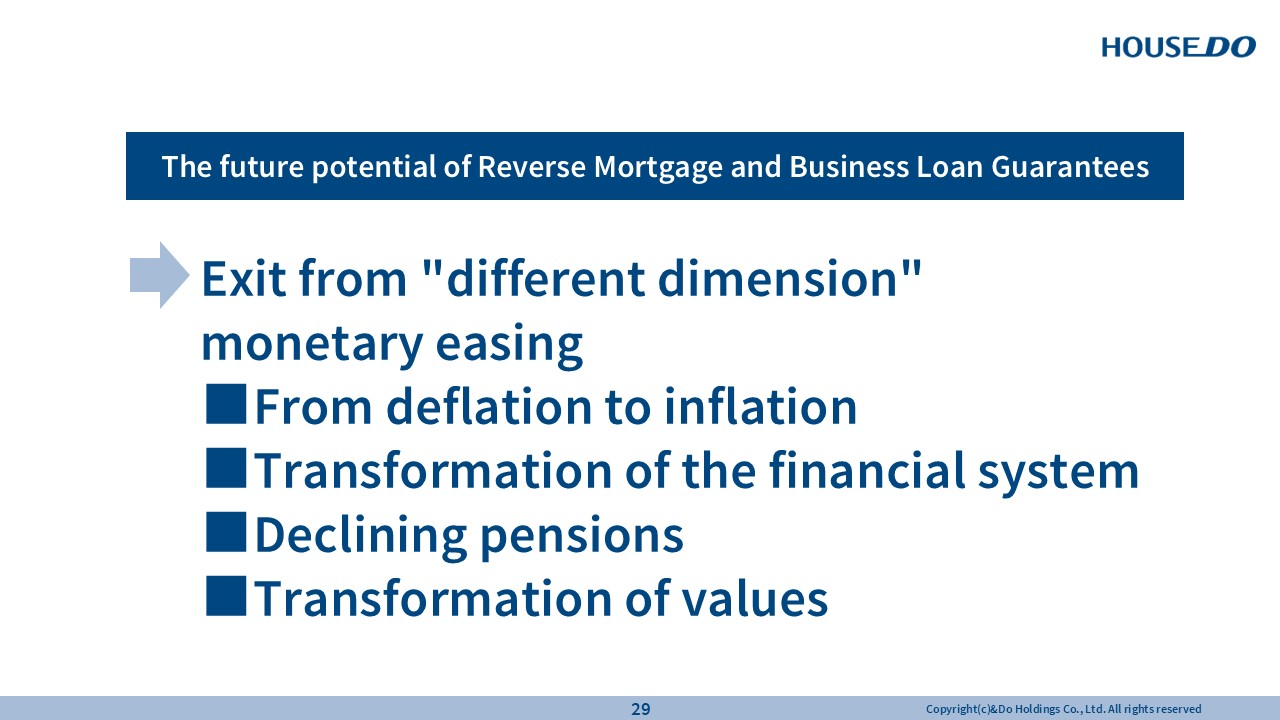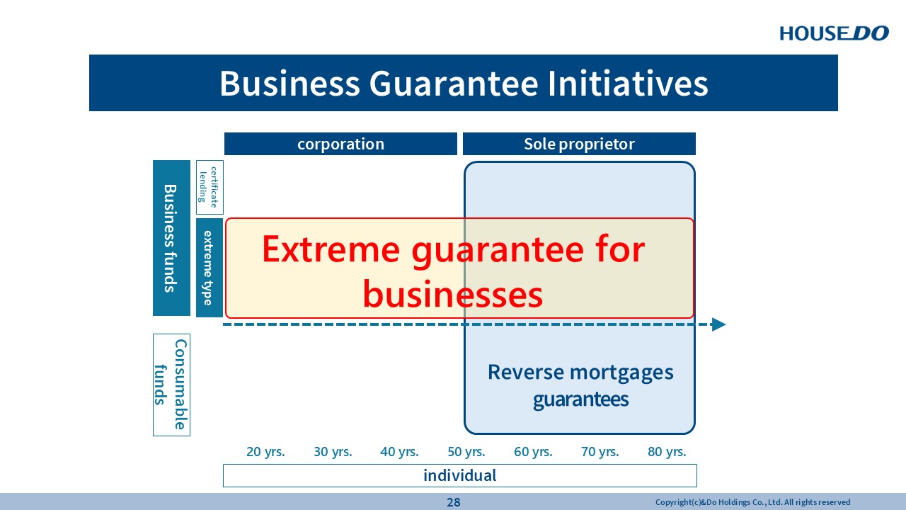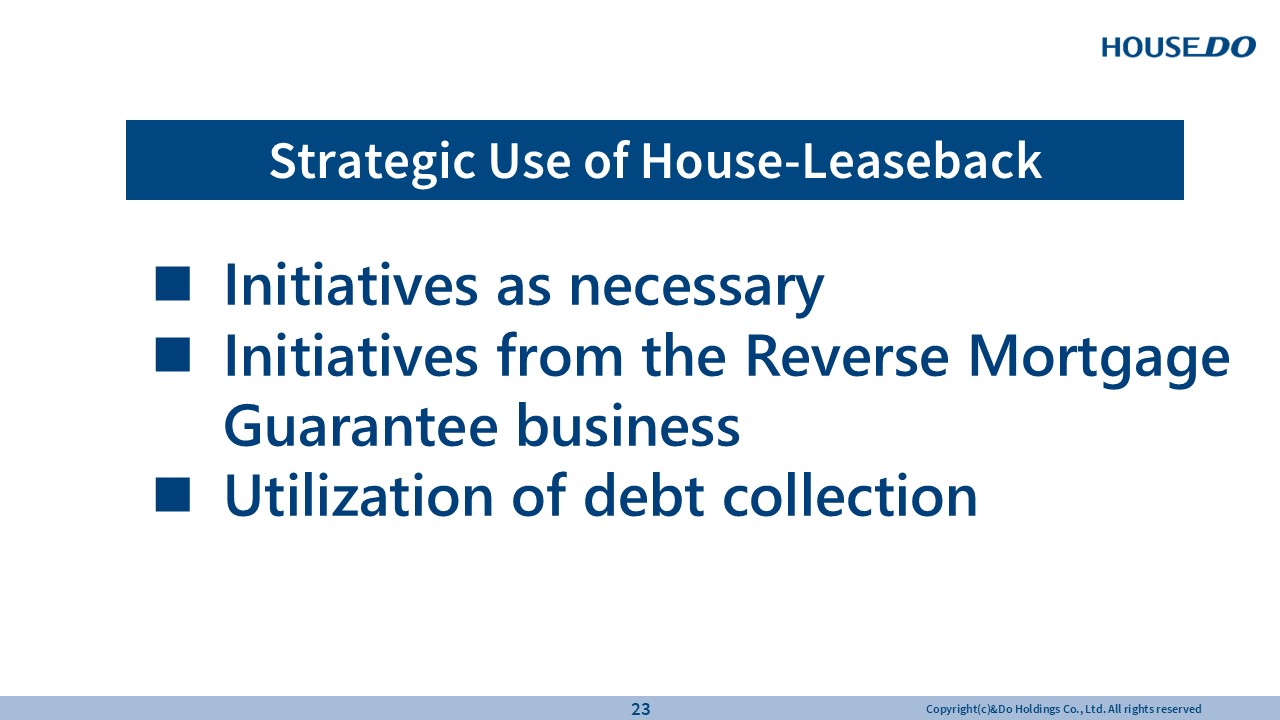 At the same time, the reverse mortgage guarantee business has been growing strongly, so we are shifting our focus there. This was, in fact, the original intent. House-Leaseback customers, at heart, do not want to sell their homes. They are really seeking financing. That is why we launched reverse mortgage guarantees.