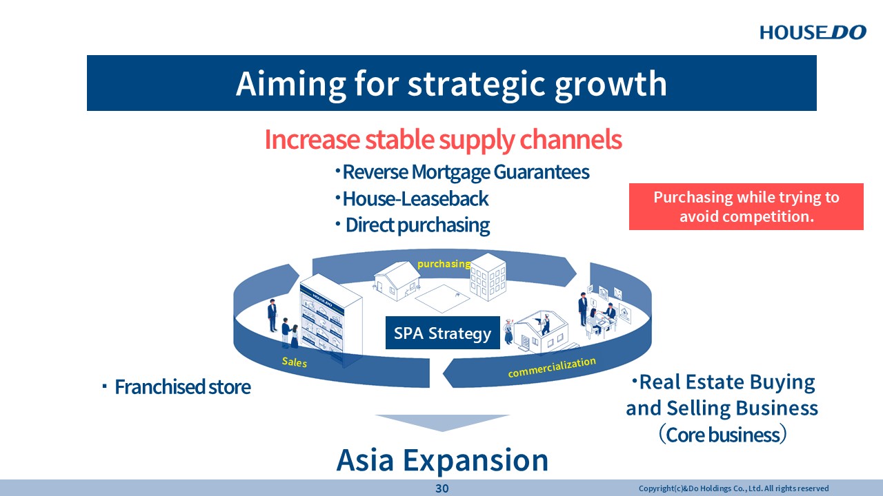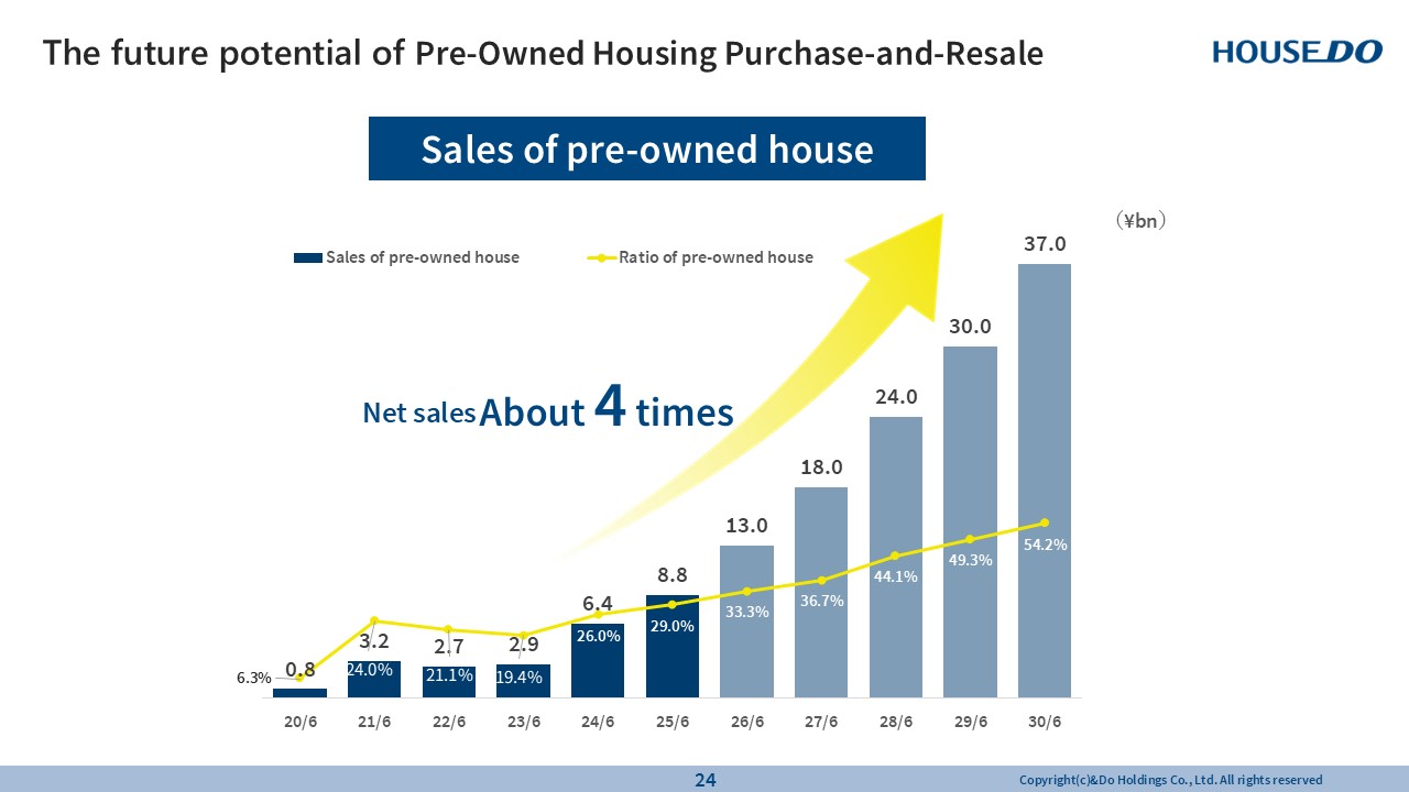 Based on this outlook, our strategy is to target this segment. We aim to become Japan’s number one pre-owned housing purchase-and-resale company.