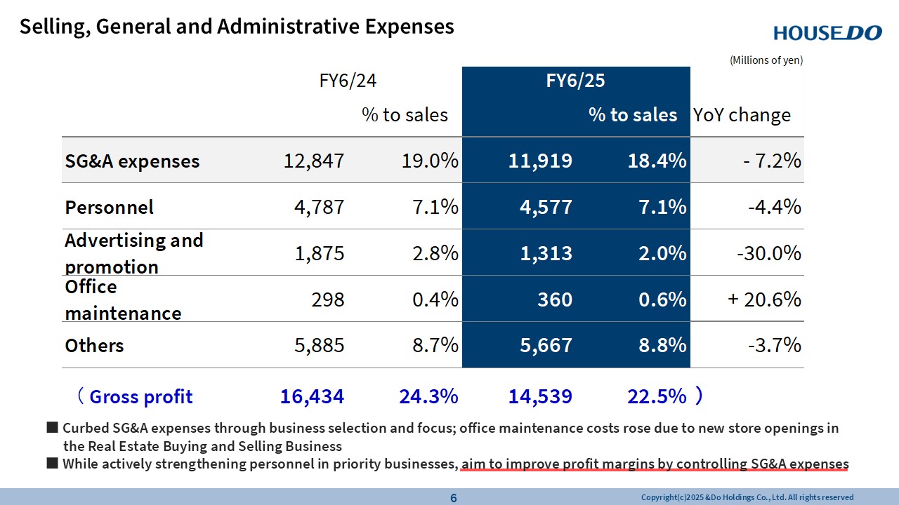 Meanwhile, in terms of the breakdown of SG&A expenses, we have been reviewing these items for some time.