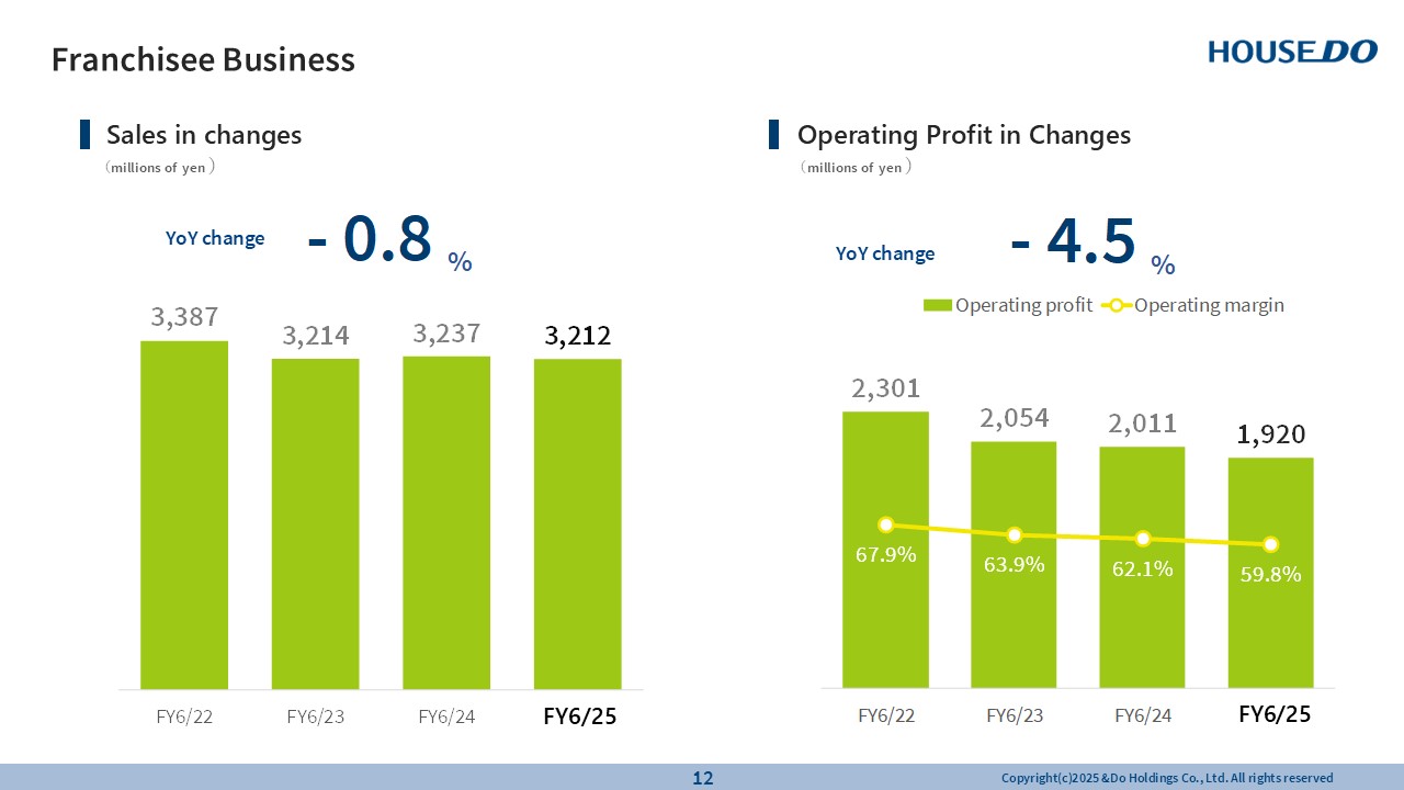 First, in the Franchisee Business, net sales declined 0.8% year-on-year, while operating profit fell 4.5%.