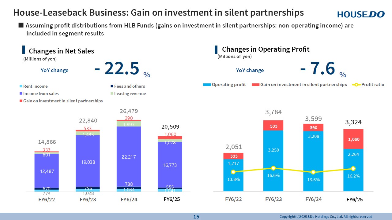 Next, let’s take a look at the House-Leaseback Business. The figures here reflect gains on investments in silent partnerships.