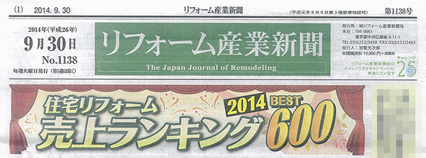 2014年9月30日のリフォーム産業新聞に掲載されました。
